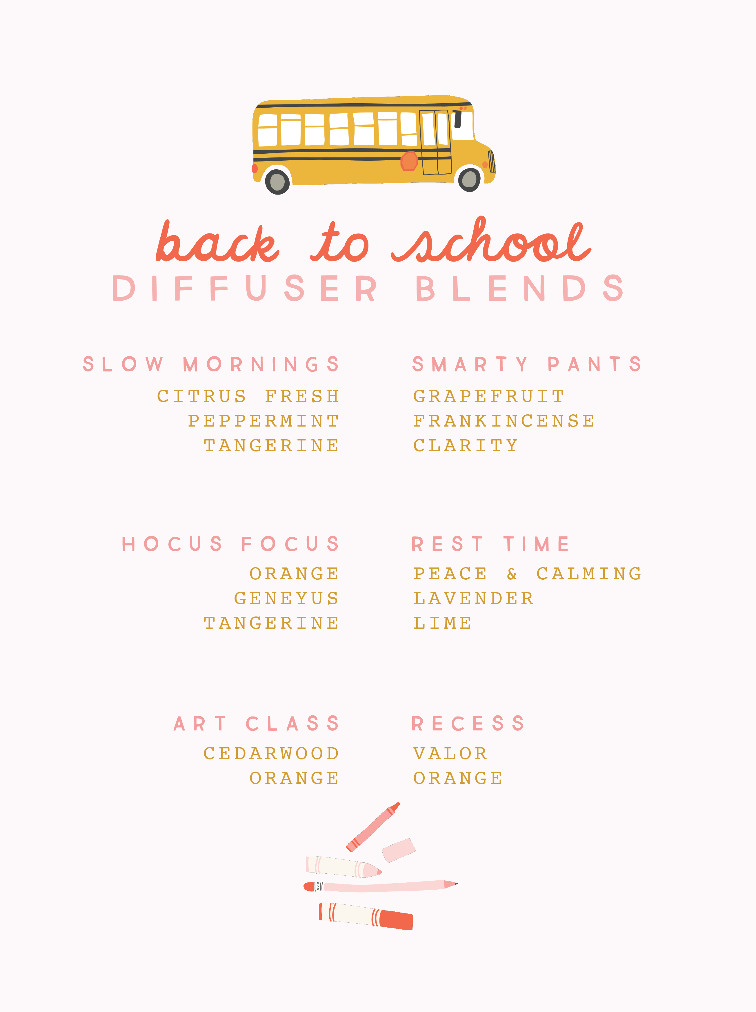 I wanted to share two things with you guys today. First, for those of you who love your essential oils, a round up of my favorite Back To School Diffuser Blends! This works for those of you who are sending your kiddos in person, doing online or fully homeschooling, and bonus, for teachers who might want to use in their classrooms!!