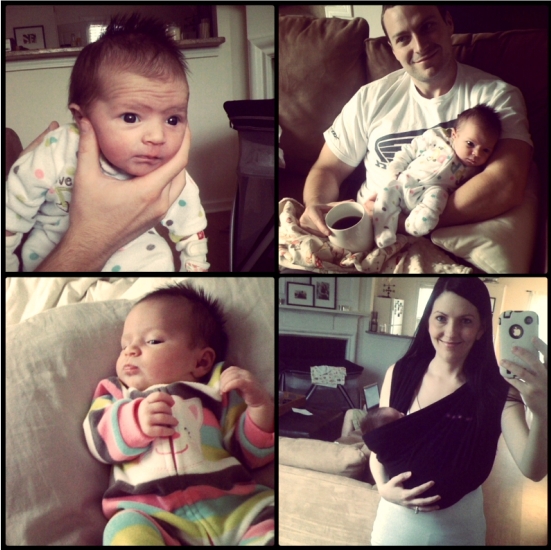 Harper loves being burped, she just chills out slumped over & wide eyed, just waiting for it. Her forehead wrinkles are my absolute favorite! She also loves lounging on daddy & staring at the windows when I open the blinds. Her other signature moves include sleeping with her legs straight up in the air, sneezing in sets of four & making loud, squeek sounds randomly throughout the day. I decided to try on a few different styles of baby carriers at the store & ultimately went with the K’Tan. It was so easy to put on myself & Harper actually loves being all cozied up in it! I plan on getting the ergo once she is a little bigger. A HUGE THANK YOU to everyone for your advice & opinions on carriers!