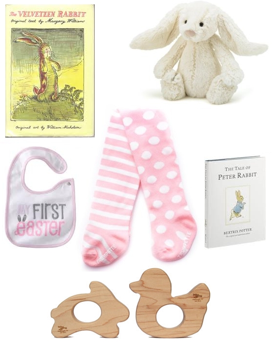Of course I am SO excited to be filling Harper’s first Easter basket… I live for this stuff! Although our little sweat pea can’t enjoy pastel colored peanut M&Ms quite yet (mommy can!) I still want to give her a basket full of goodies to remember her first Easter. I thought I’d share the contents with you in case anyone is looking for any last minute basket fillers for your little chickies 🙂