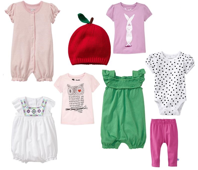 - Rompers, rompers, rompers!! You can only get away with these in the summer, so stock up! They are seriously the cutest, easiest for babies to wear & fun to show off their little thighs! Pink & black dotted one is from the Gap.