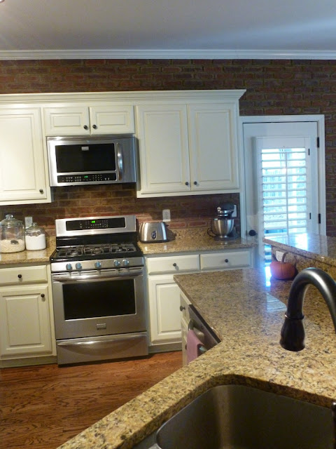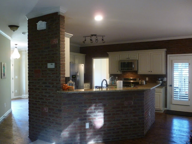 First stop, the kitchen! The brick is what totally sold me on this house before we even came to see it. Wonder how much I will love it when Harper is starting to put some miles on those little wheels of hers running all around the house like a wild child…