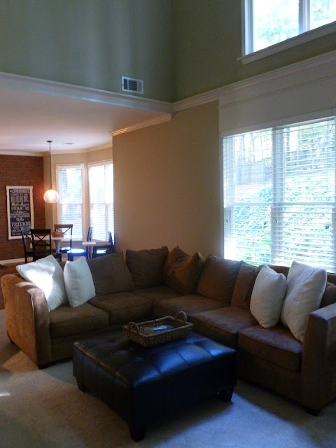 I hate, hate, double hate this mirror on this wall. Seriously, I couldn’t find anything smaller? This picture also reminds me of how badly we need to pick a new paint color for this room.