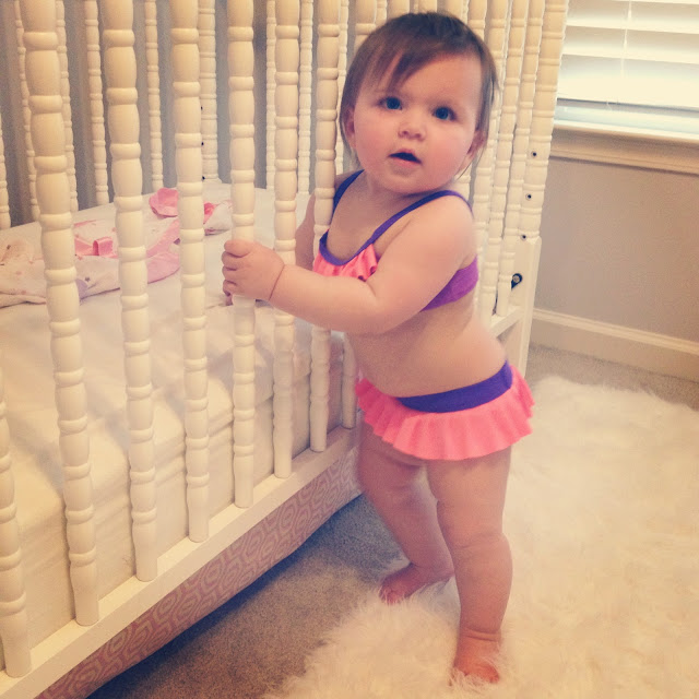 My favorite part of planning for the trip? SWIMWEAR! I couldn’t pass up this adorable colorblock two piece that I found the other day, I put it on her just before bedtime the other night & we were just loving life!