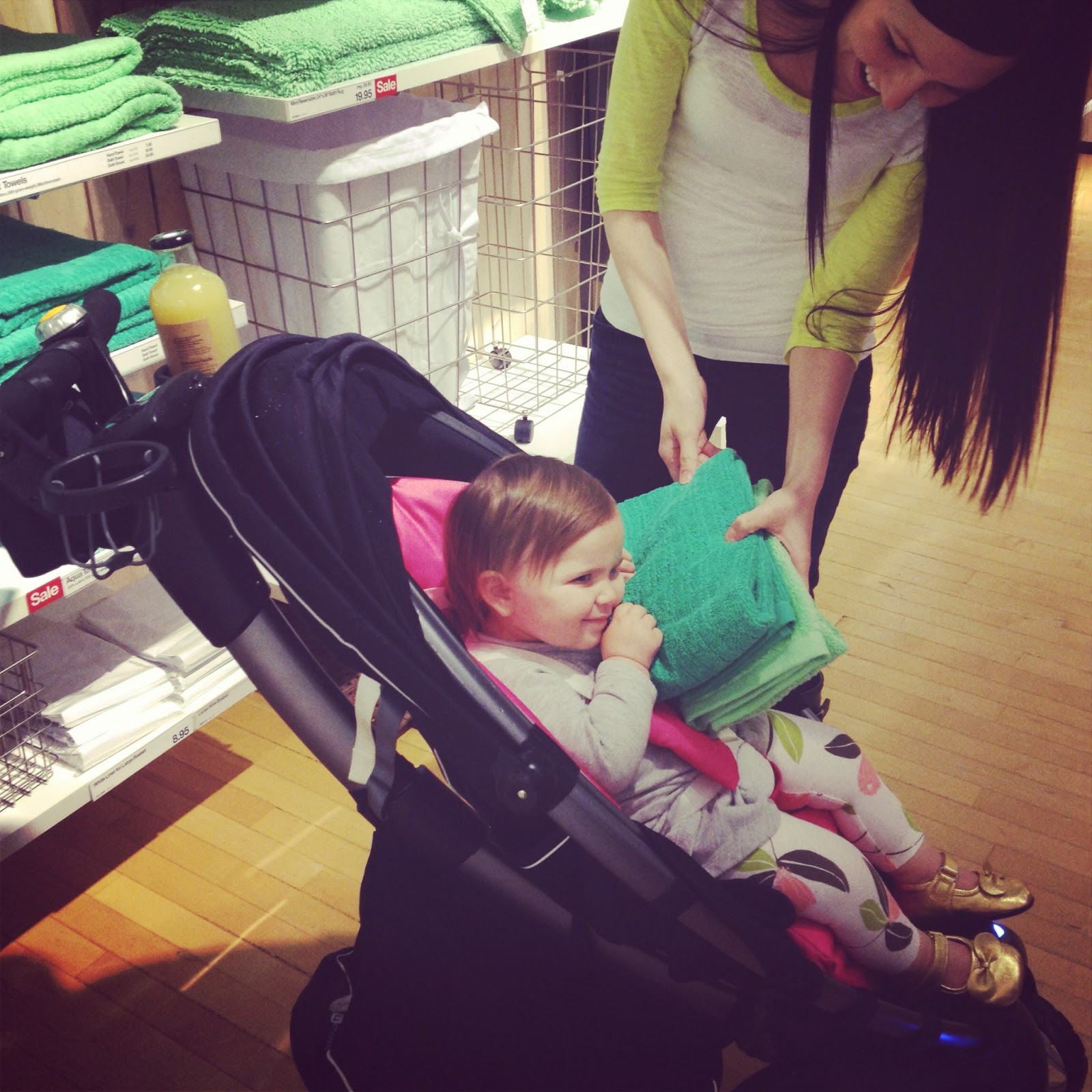 Saturday, we ran some errands, Harper ate Chipotle for the first time & we shopped for bathroom accessories. All while in the pouring rain. I know, exciting business over here.