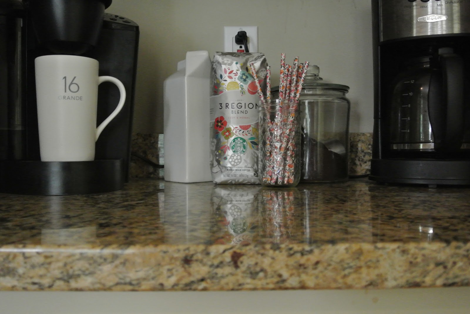 And of course, the coffee station. Where we clearly love coffee so much that we need two coffee pots. And yes, I totally bought that bag of coffee just for the packaging. And because it matched my straws.