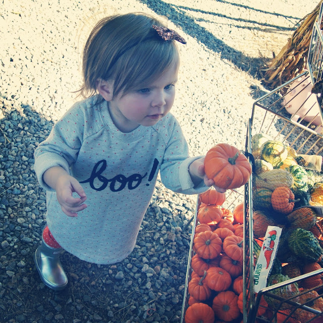 Harper has been practicing her trick-or-treating with her new pumpkin bucket we got from the grocery store. She went bonkers when she spotted it, I don’t think she could decide if it was a real pumpkin or a balloon. Her favorite thing to do is to fill it with leaves in the backyard (and then get pissed when I won’t let her bring them all in the house).