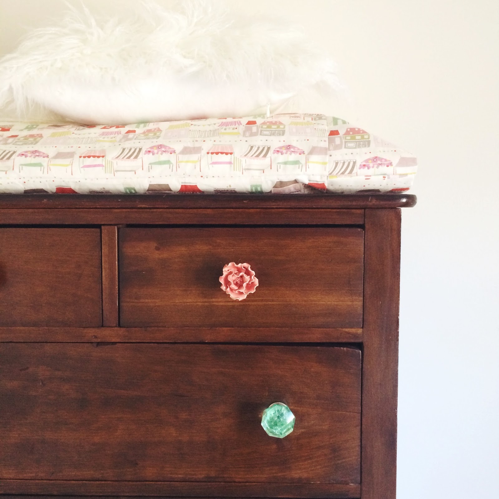 The rest of our afternoon will be spent switching around everything in the girls rooms! I finally found knobs for Harper’s dresser (pink floral & green glass) & I am loving the mismatched look. Wish us luck as we tackle the first night in the big kid bed tonight!