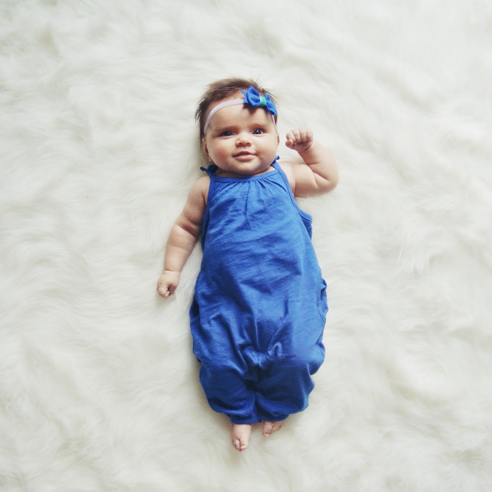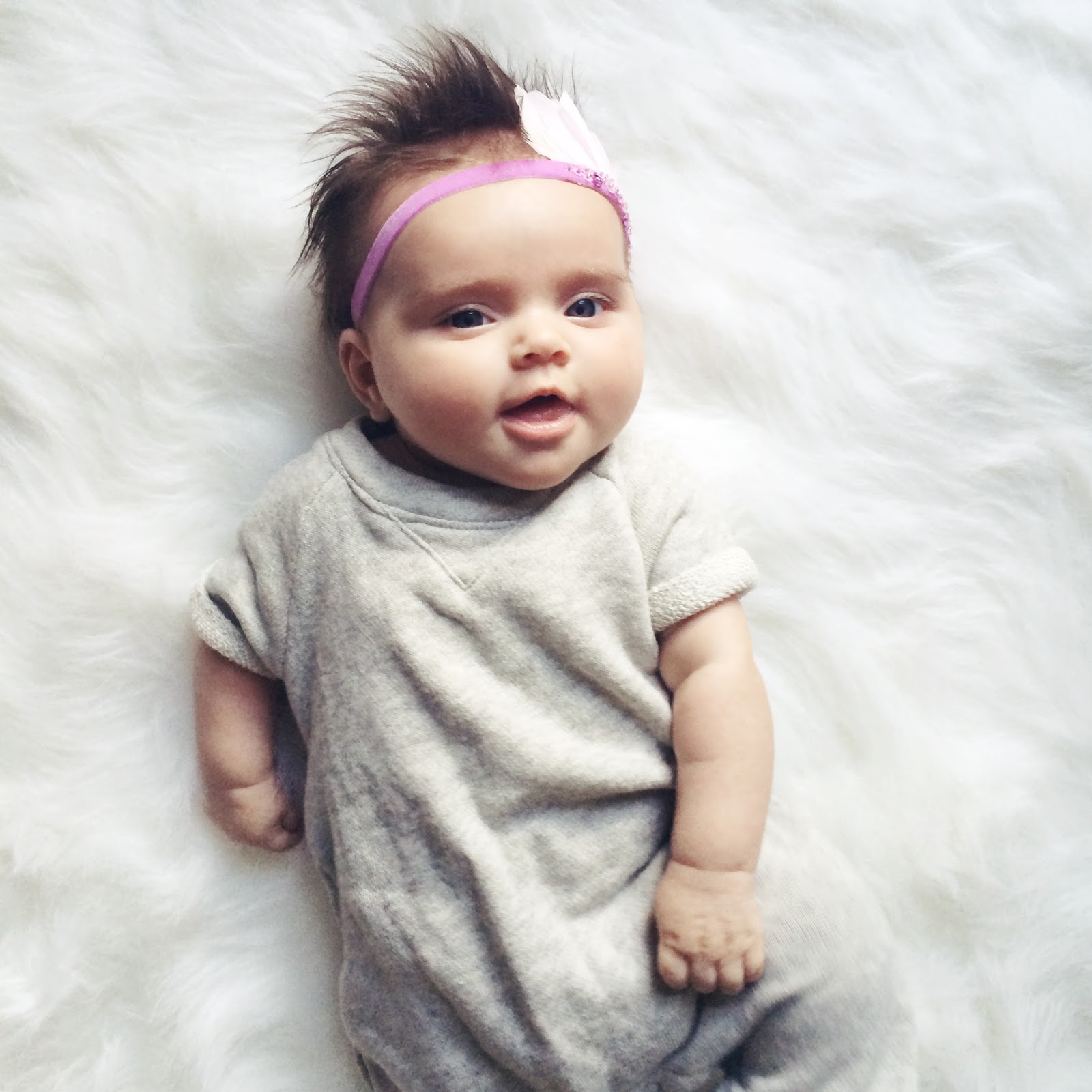 Eloise loves being outside, is starting to not mind her carseat so much, but still prefers being wrapped up tightly against me while we shop or go for walks. Cuddling is her jam. I swear she will roll over any day now, usually throughout the night her head goes from one end of the crib to the other by the time she wakes, just from how much she squirms & tries to roll. We have kept one arm out of her swaddle for the last few nights & she has done surprisingly well with it, hoping to have the other arm out soon so I can stop worrying so much about her rolling onto her belly in her sleep. She still loves tummy time, I lay her on her boppy & she watches Harper play. She also loves watching the ceiling fan & hearing music.