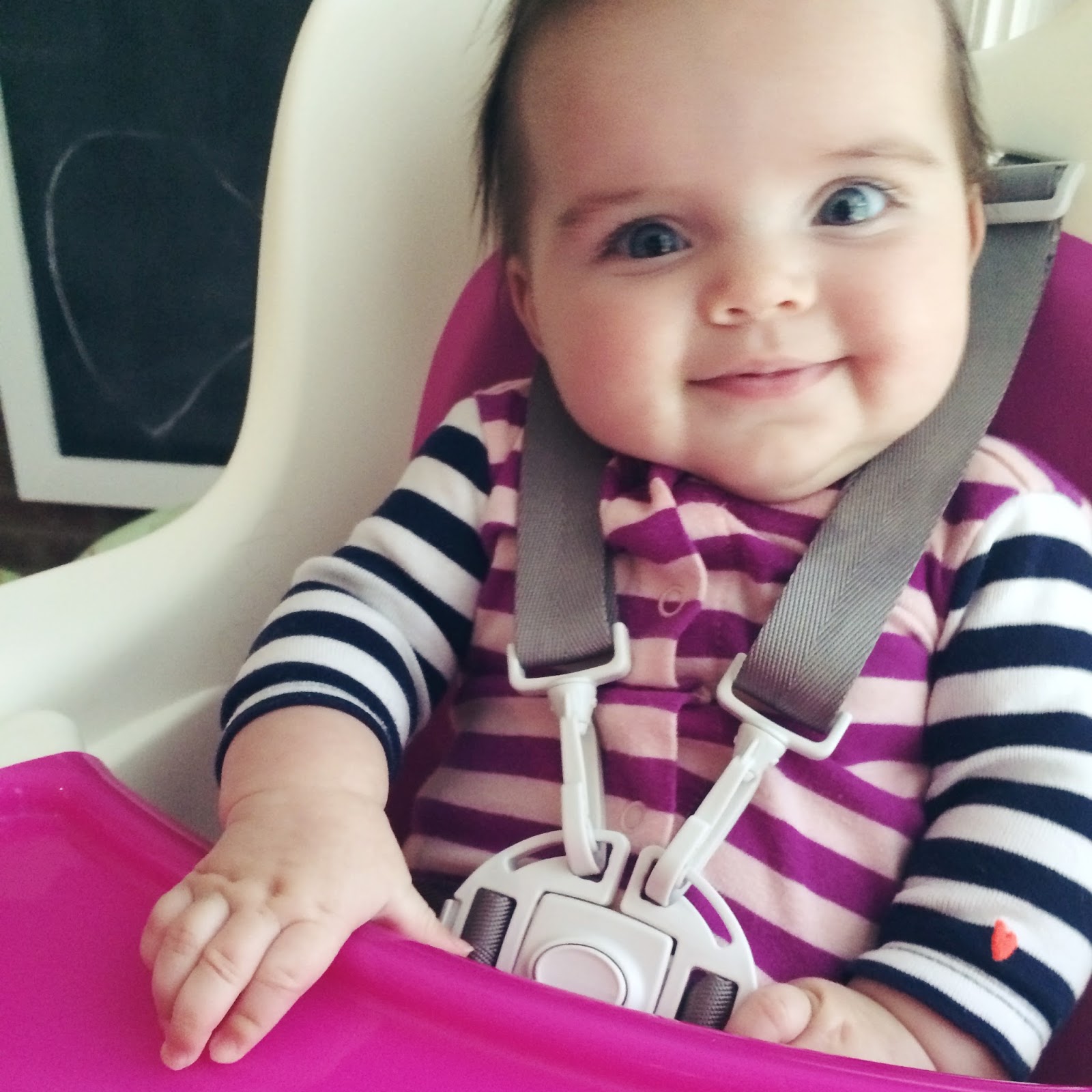 Harper handed over the torch to her little sis, now the proud new owner of her very own high chair! 😉 Eloise took her new whip for a spin & was loving it. I think she is just happy to be at eye level with everyone while we eat dinner, rather than in her bouncer or being held. We have her four month (wait, what?) appointment this week, excited to get the go ahead for starting solids soon!