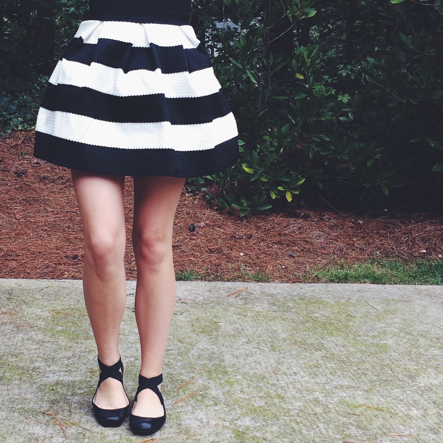 This skirt from Target is the most adorable thing EVER. It is super stretchy & structured for the most flattering look, plus it’s only $20! And not to mention, black & white stripes go with just about anything! I plan to pair it with a chambray shirt & my ballet flats for some wedding festivities this week! 😉
