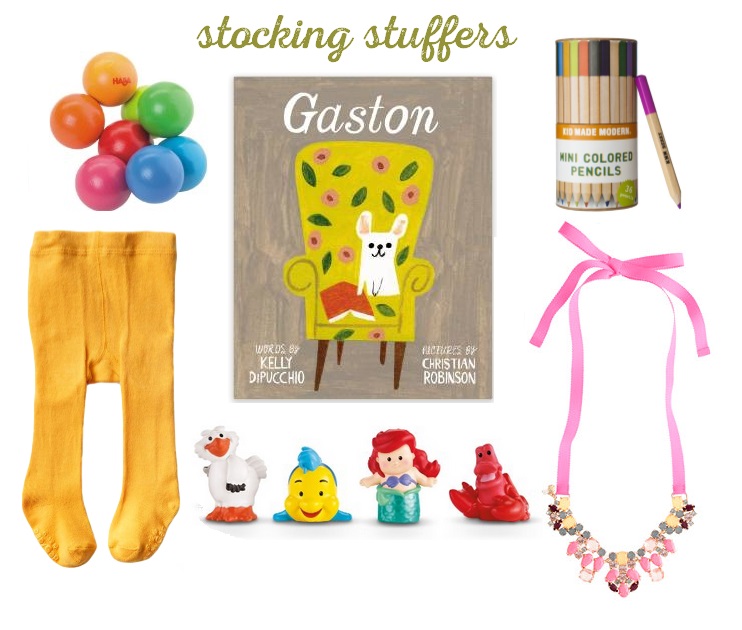 I also wanted to share some last minute stocking stuffers, we are officially done with our shopping which is a huge relief. But I am soooo excited to see the girls open their gifts on Christmas morning! We just did a few small stocking stuffers, some art supplies for Harper, nailpolish & some fun necklaces. For Eloise, some teethers, tights & a new book as well. And for both girls, their favorite thing ever, Little People!! They fit so well in Ellie’s hands but not small enough for her get in her mouth. Harper loves to line them up & play with them all day long, they’re the perfect stocking stuffer!