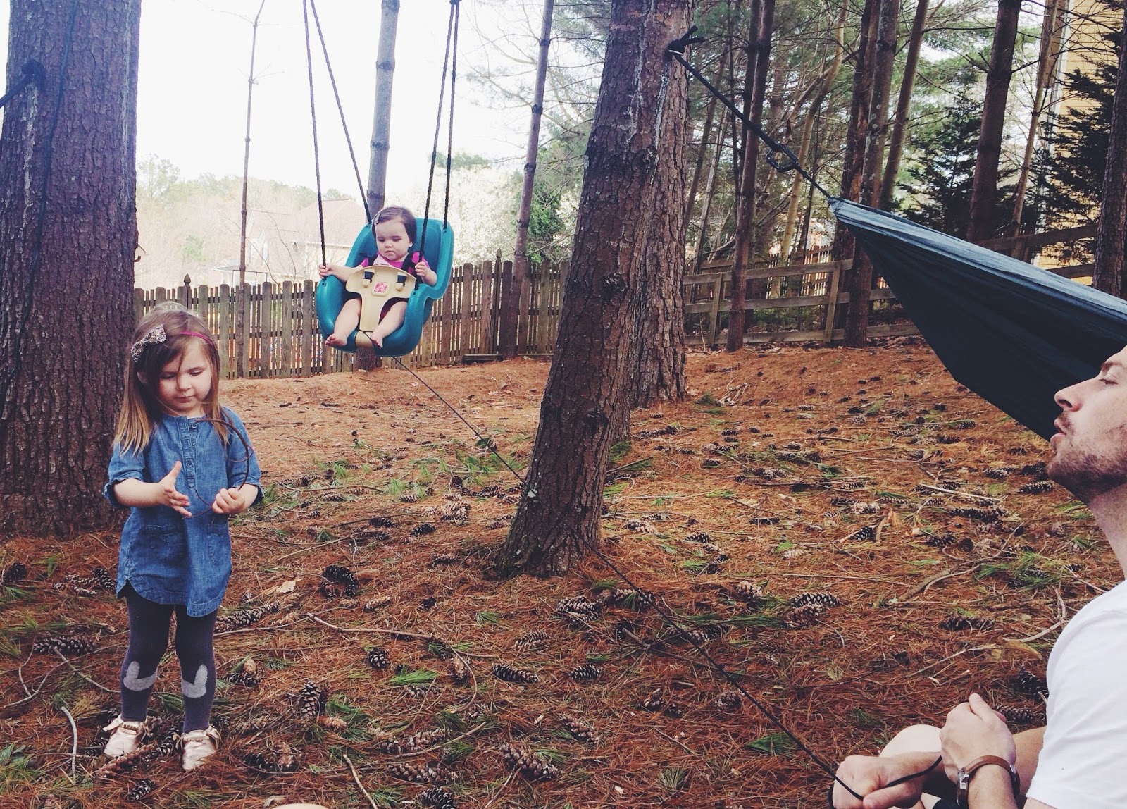 We had friends visiting this weekend from Iowa & California for a baby shower that we hosted at our house. Our good friends are due with their first baby boy at the end of April, shortly after Eloise’s birthday. We were able to get our hammocks out, which made the girls very happy, Harper was more excited about using sticks as princess wands but Eloise loves swinging! It was the perfect first weekend of Spring, a house full of our favorite people & lots of sunshine!