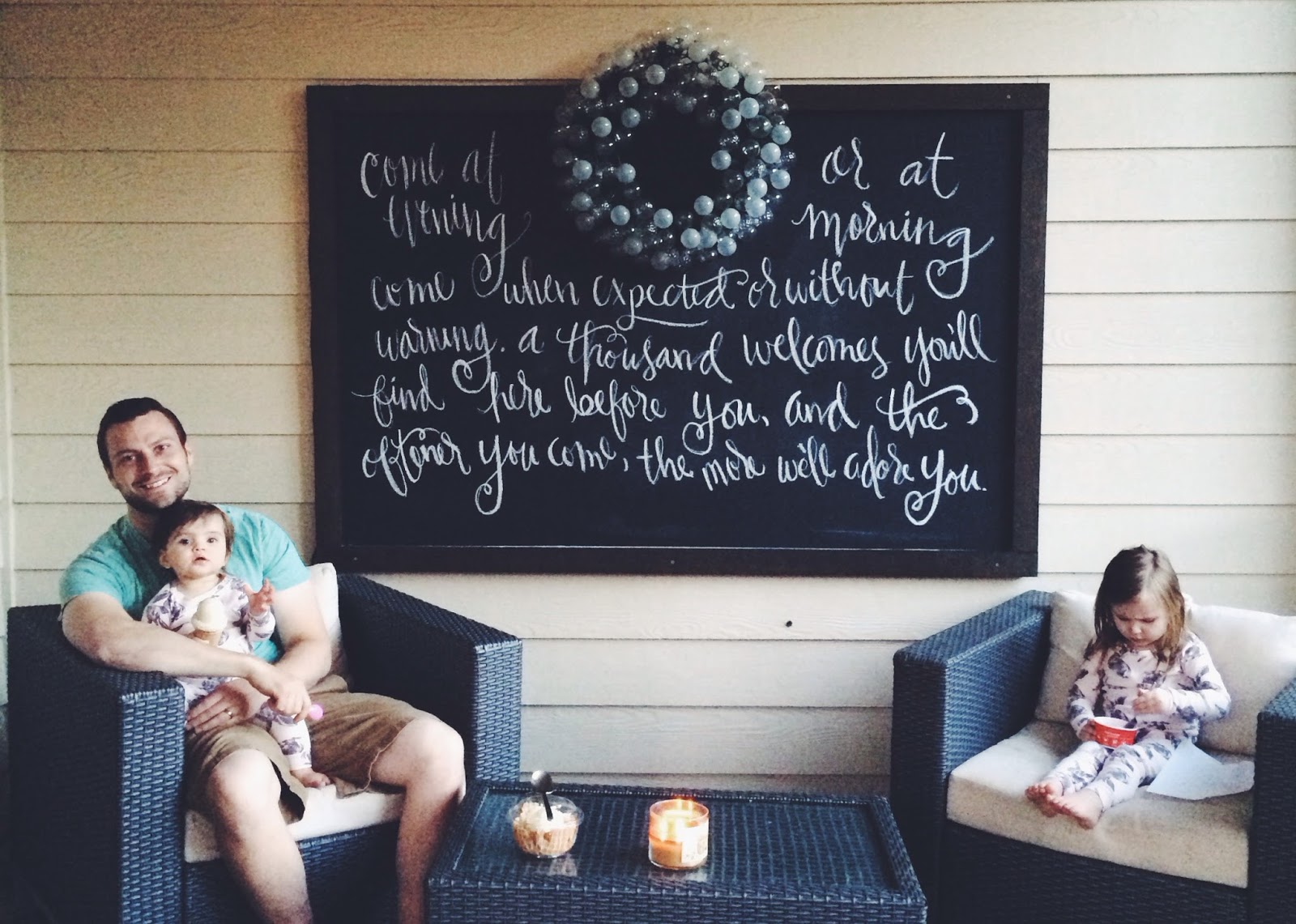 LOVE the outdoor chalkboard- your writing couldn't be more perfect and gorgeous!! Love your festive spirit!