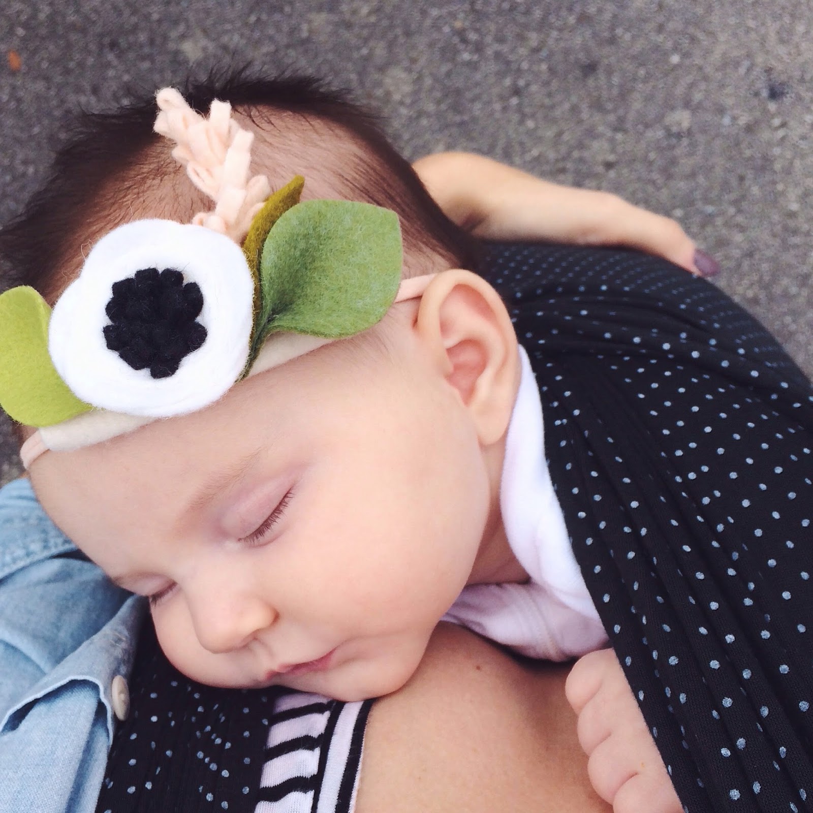 Solly Baby Wrap // Flower Headband // Chambray Shirt // White Jeans // Tulle Skirts // Black Cat Shoes