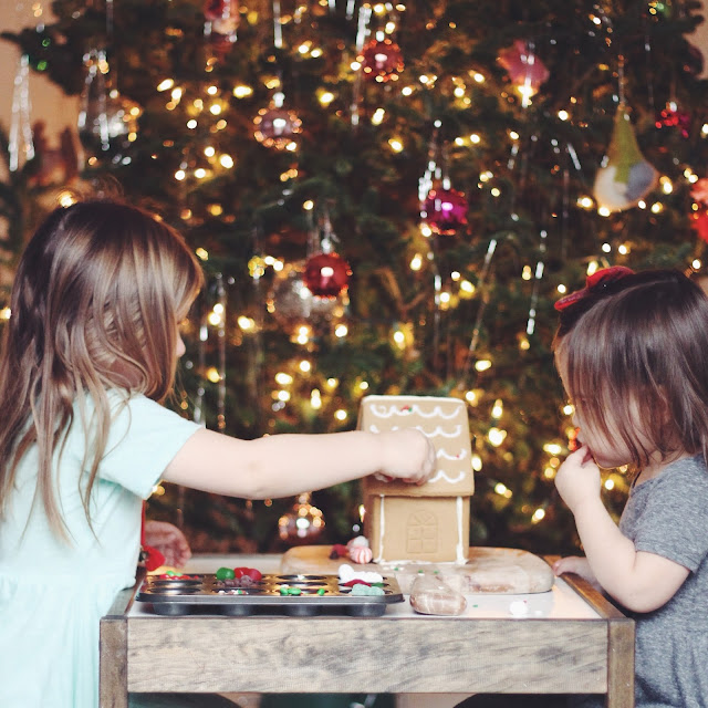 The holiday season is upon us & we are so happy to be filling our house with little bits of Christmas magic. We hung our advent calendar, decorated our tree & made our gingerbread mess house that the Elf brought for the girls. Harper wakes up every day asking if it is Christmas yet, and I love seeing all of the excitement in her eyes, and Eloise’s excitement that follows. The girls never miss an opportunity to dance to Christmas music, “ooh-and-ahh” over the tree & tell Claire all about Jesus’s birthday. We are taking full advantage of all that this season has to offer, in both teaching our kids about the true meaning of Christmas, and making every day just a little bit festive.