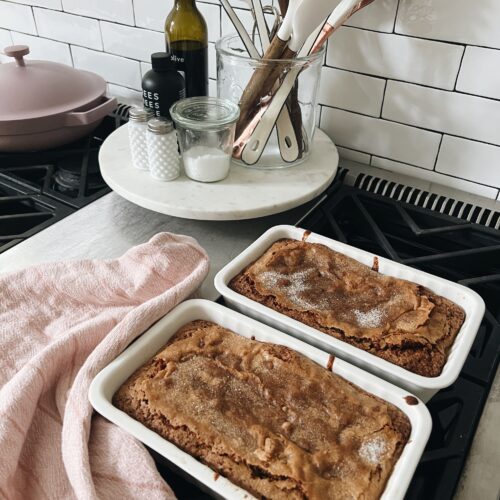 In the morning, remove cover & place in oven at 350 degrees (I have read multiple recipes that say you do not need to preheat, so I didn’t) and bake for 40 minutes. Best enjoyed with a little bit of butter, maple syrup & powdered sugar.