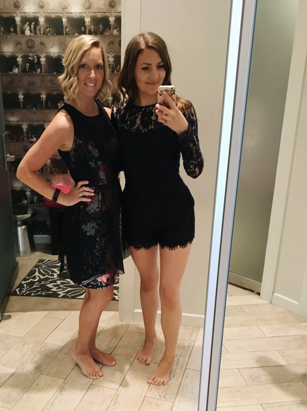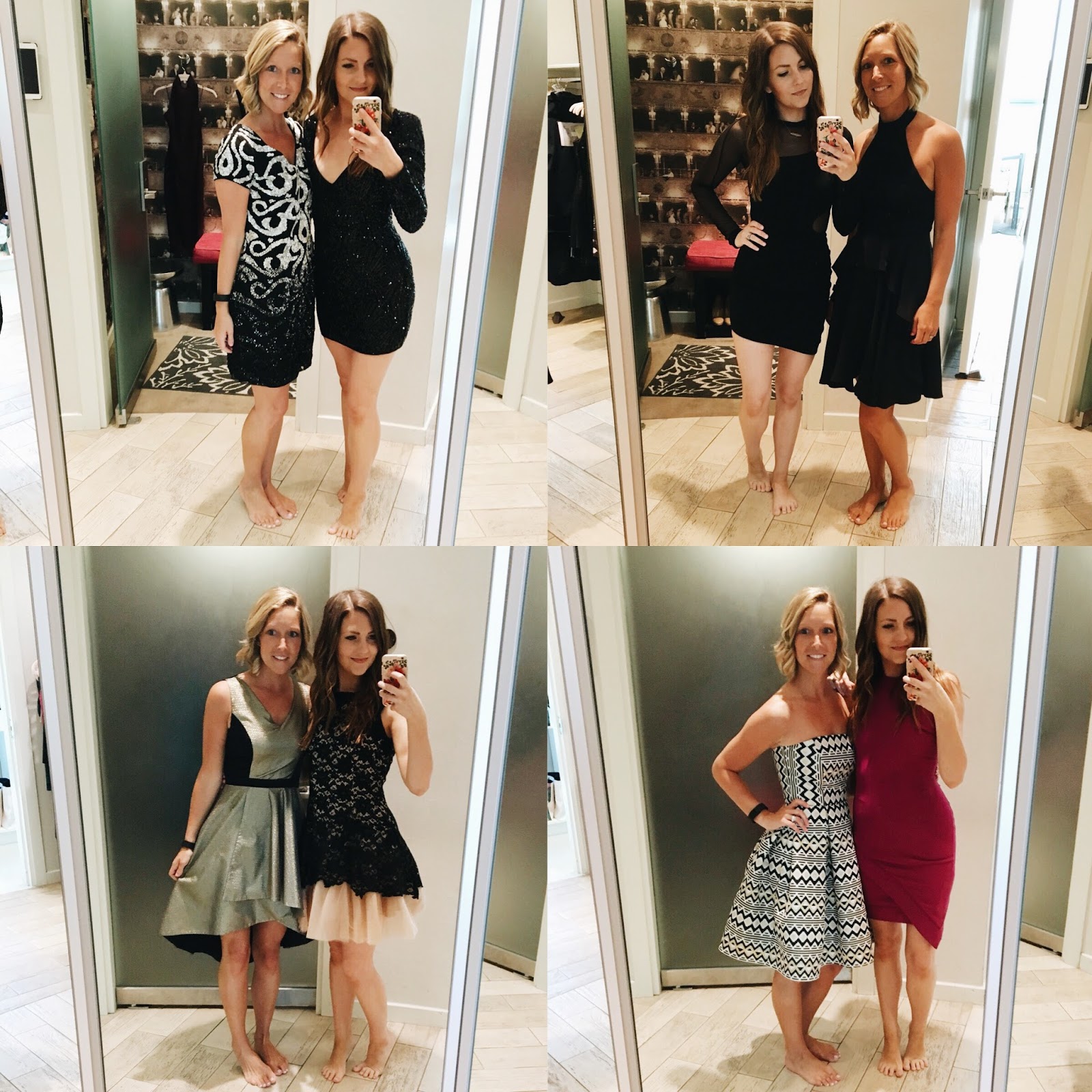 We gave our stylist (Arielle, who was ahhh-mazing!) our sizes, favorite styles, colors, etc. and told her our plans for the night, and she picked out a few looks that she thought we would love. Of course, she hit the nail on the head, and had so many great picks! These were just a few of the styles that we tried on, and as I mentioned in my last post, I picked the lace Cynthia Rowley romper in navy, which I never wanted to take back! Check out the whole rompers & jumpsuits section, there are seriously so many cute options! Can you guess which dresses were our second runners up?