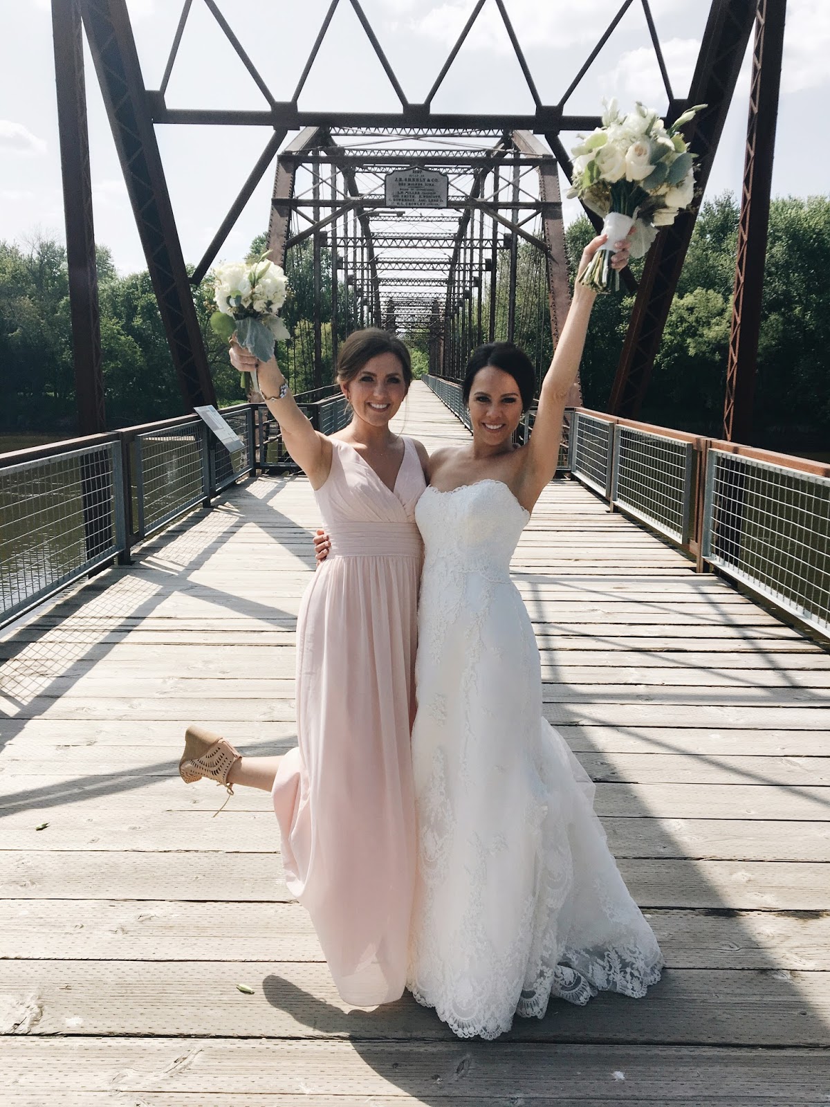 Saturday morning, we got our hair done & I worked on the chalkboard for the wedding reception entrance. I loved the fishtail braided updo that the girl at the salon did, it definitely motivated me to keep working on my braiding skills, I would so love to do some fun stuff like this with Harper’s hair! The wedding was beautiful & the weather could not have been more perfect for the day. We jumped on a party bus in between the wedding & reception, and headed out to the river to take pictures. We stopped by a fun hole-in-the-wall bar where everyone writes their names on dollar bills & pins them to the ceiling. A fun memento for the bride & groom to come back and see them all in years to come! I am kicking myself for not taking more pictures of all the beautiful decor, but I’m not sure I even had my phone or camera with me during. The reception was at the Kirkwood Hotel in Cedar Rapids, which was so nice & the whole atmosphere was just beautiful. We danced the night away & made sure to go back for a second piece of wedding cake because it was just that good! 😉