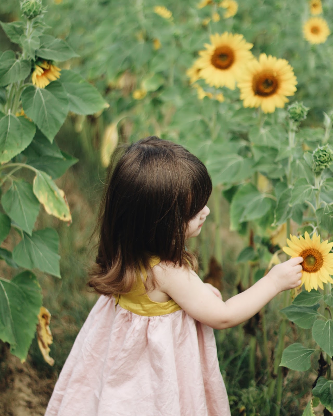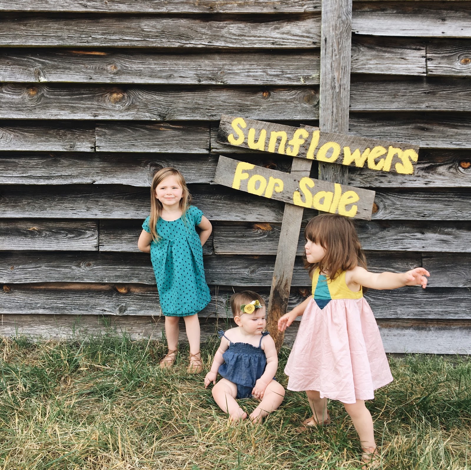 We took a little trip to a local sunflower farm last week & the girls have not stopped talking about it ever since. Harper called it “the land of yellow corn flowers” and after sneezing a bunch after we left, she got very concerned about having “aller-jesus.” It has always been my dream to own a place like this, a Christmas tree farm in Vermont or a bed & breakfast in Savannah. Or a house on Melrose in Iowa City during tailgating season. 😉 A place of your own, that you get to share little bits & pieces with everyone else. Kinda like blogging I guess.