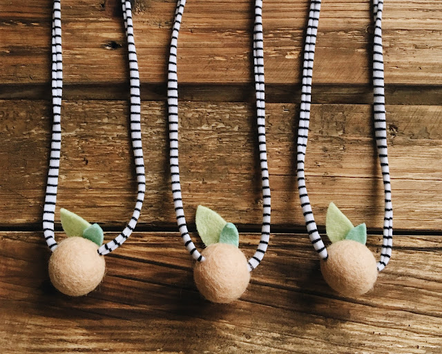 I asked my friend Hana of Hooray Everyday if she could make some peachy party goods for us, she whipped up the most festive peach felt garland & adorable necklaces for all of the girls. I just love them, they’re the cutest keepsake to remember the day!