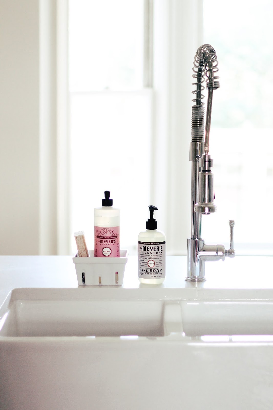 Sources: Faucet // Farmhouse Sink // Monogram Wall Hooks (similar here & here) // Ruffle Backpacks // Bedroom Jute Rug // Bed from Ikea (similar here) // Metal Chairs