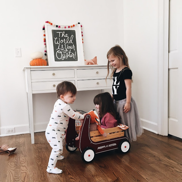 The girls have been loving school, they have their Fall festival coming up & we are hard at work on Halloween costumes. Harper has requested to be Monster’s Inc. for their school trick or treat, so hoping we can pull that off on top of our family costume!! I cannot wait to share! October is just so good, you guys. Nothing makes us happier than a chilly Fall day, Hocus Pocus on in the background & a comfy pair of Halloween pajamas (similar here).