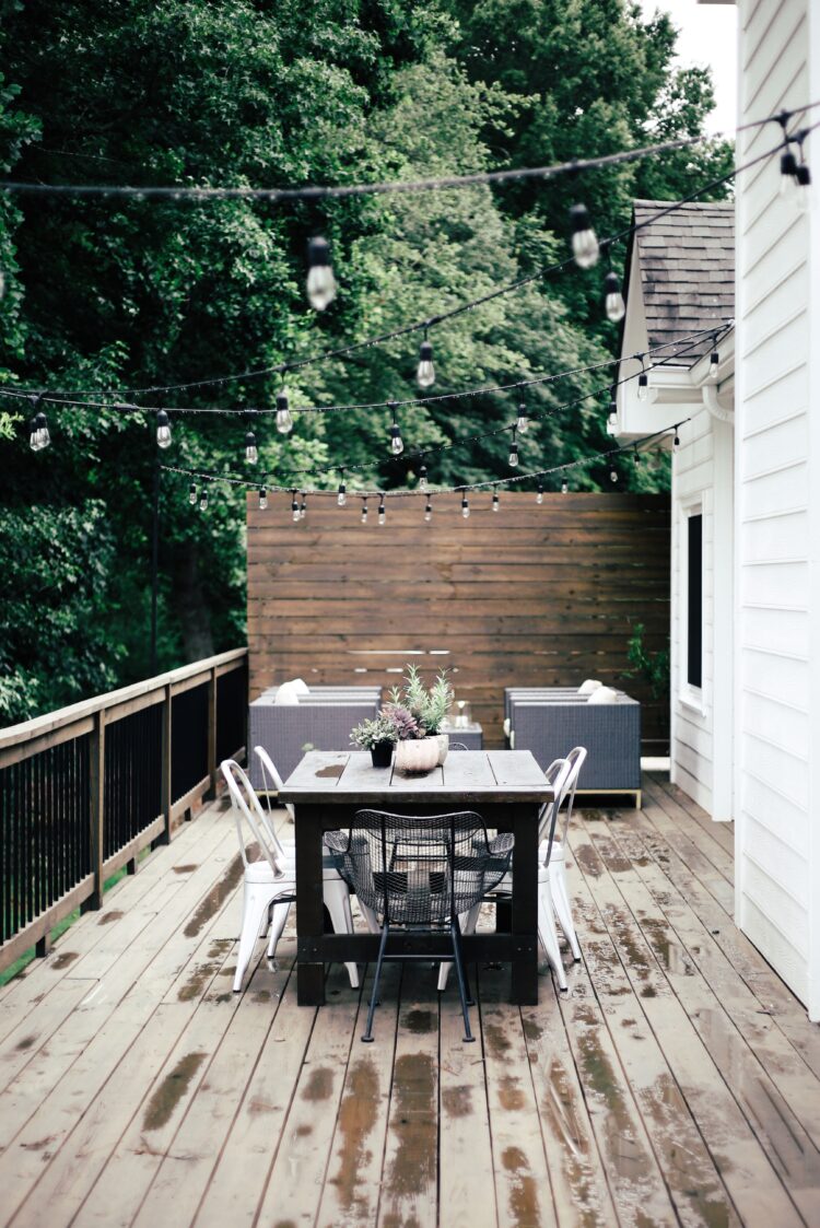 Happy official first day of Summer! It has been nothing but swimming, adventuring, napping & evening thunderstorms over here. Isn't that what Summer is all about?! I wanted to share a little tutorial on how we hung our string lights on the back deck. Tons of you have asked about how to do ...